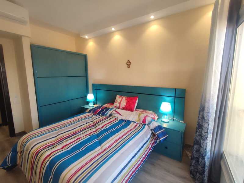 The Apartment is 86 sqm. It’s on the second floor with a very distinctive sea view. The Apartment is very bright and has modern furniture. The kitchen is Italian-style. There is a dining table for four people. It’s fully equipped with all the appliances you may need. The living room is spacious with a big terrace viewing Zahabia Street and a beautiful sea view.